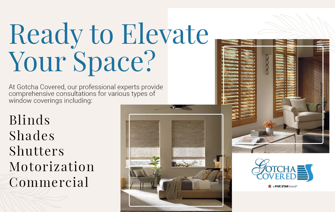 Gotcha Covered stands out as a premier provider of custom window treatments, offering diverse solutions to elevate any space's beauty and functionality. We cater to residential and commercial clients, prioritizing quality, style, and personalized service. Our extensive selection, which includes blinds, shades, and shutters, is fully customizable to align with your unique preferences and needs. We work closely with you to grasp your vision and deliver custom window treatments that harmonize perfectly with your décor and lifestyle.
